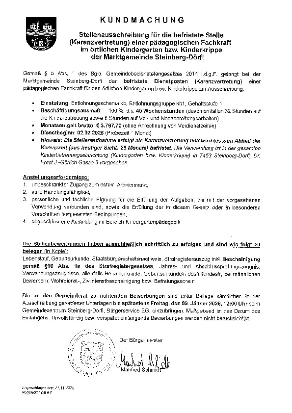 (nähere Informationen finden sie bei der Amtstafel)