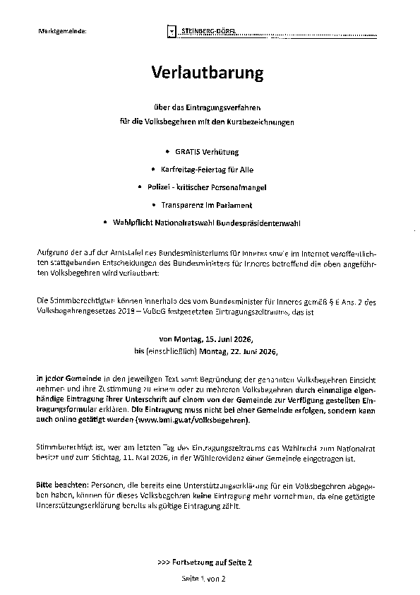 (nähere Informationen finden sie bei der Amtstafel)